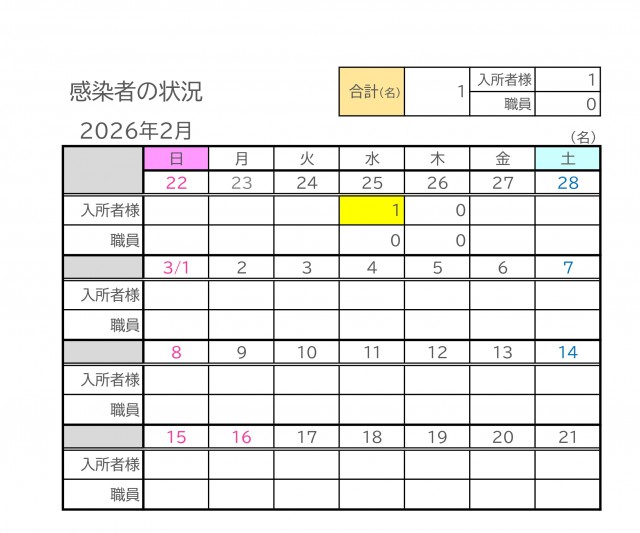 【緊急連絡・感染症関連】 本日2月25日(水)、2階入所者様1名が新型コロナウイルス陽性と判明いたしました 2026/02/25