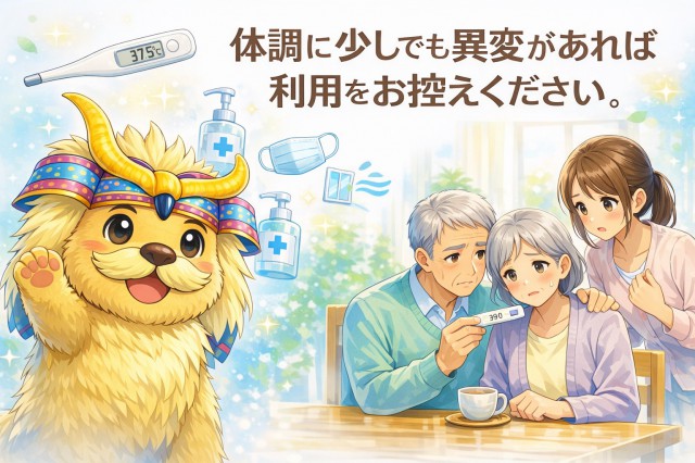 ご利用前に、体調や健康状態に少しでも異常があれば、必ず利用をお控えください。