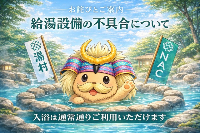 【お詫びとご案内】 給湯設備不具合への対応について|入浴は通常通りご利用いただけます 2026/03/30