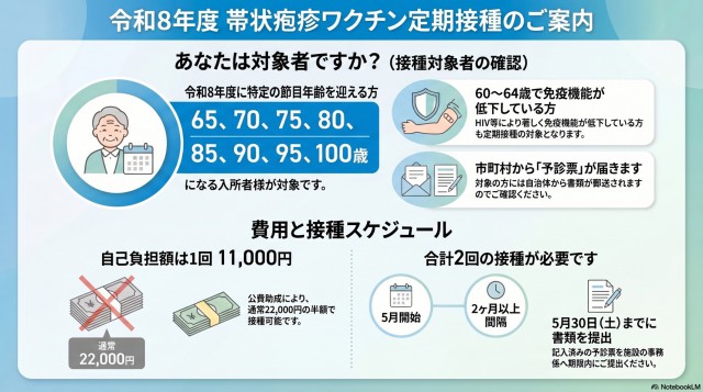【痛みを防ぐ選択】 帯状疱疹ワクチン接種のご案内|令和8年度 2026/04/17