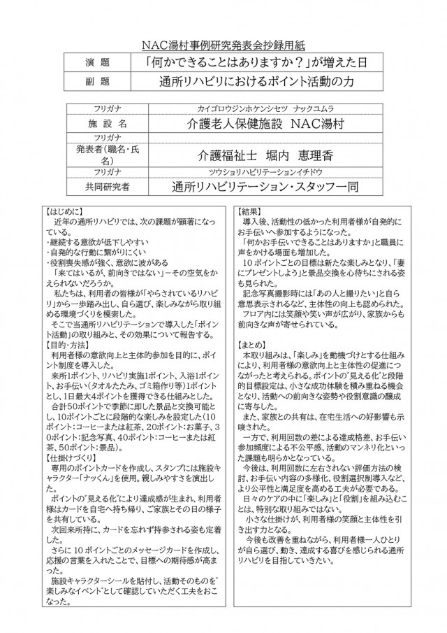 利用者の笑顔と前向きな声が印象に残る発表でした。