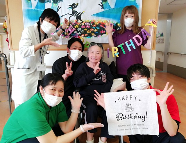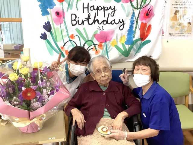今月は、入所者様6名、通所リハビリ利用者様11名、計17名の皆様がお誕生日を迎えられました。