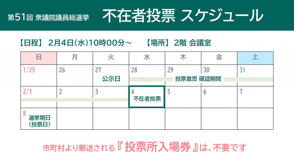 【大切な一票を、安心できる場所で】 衆議院議員総選挙に伴う「不在者投票」のご案内 2026/01/27