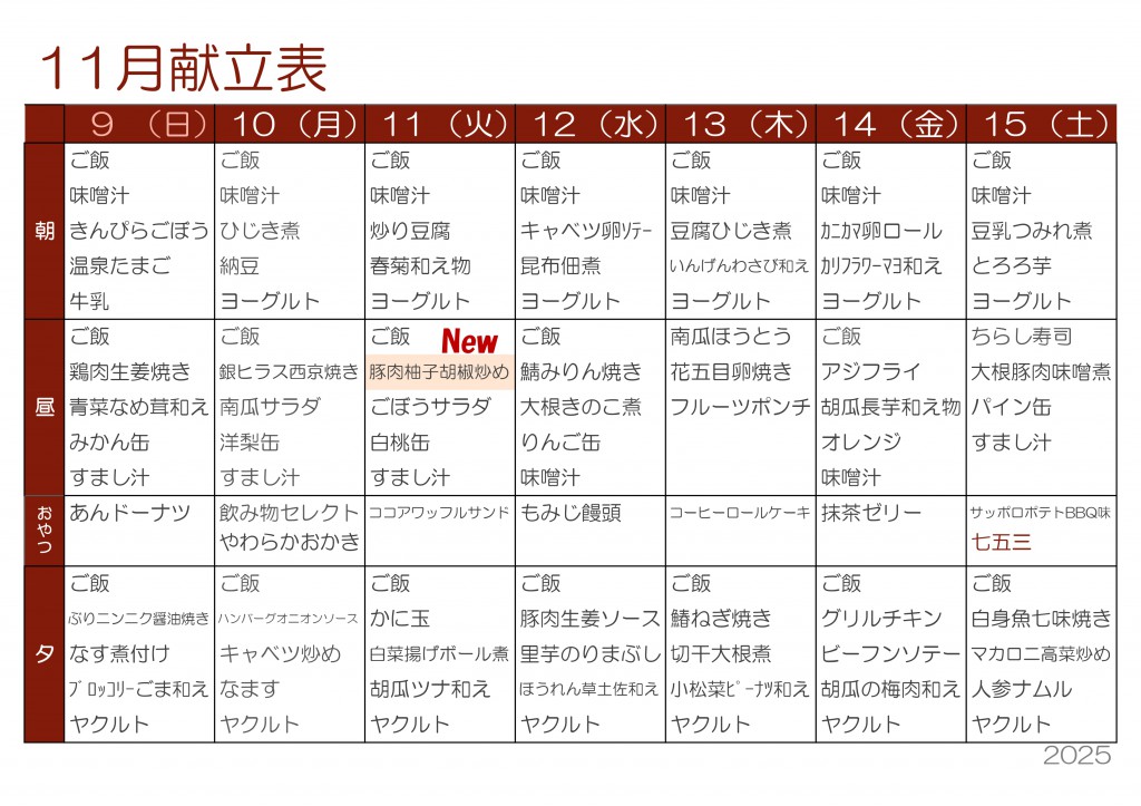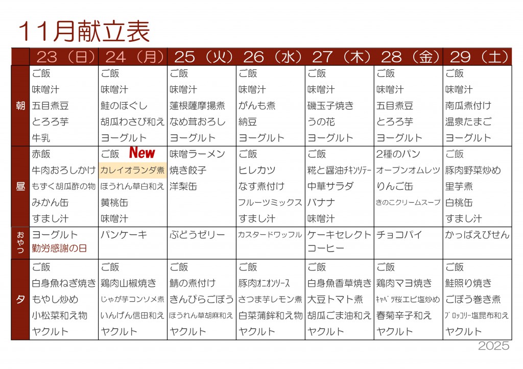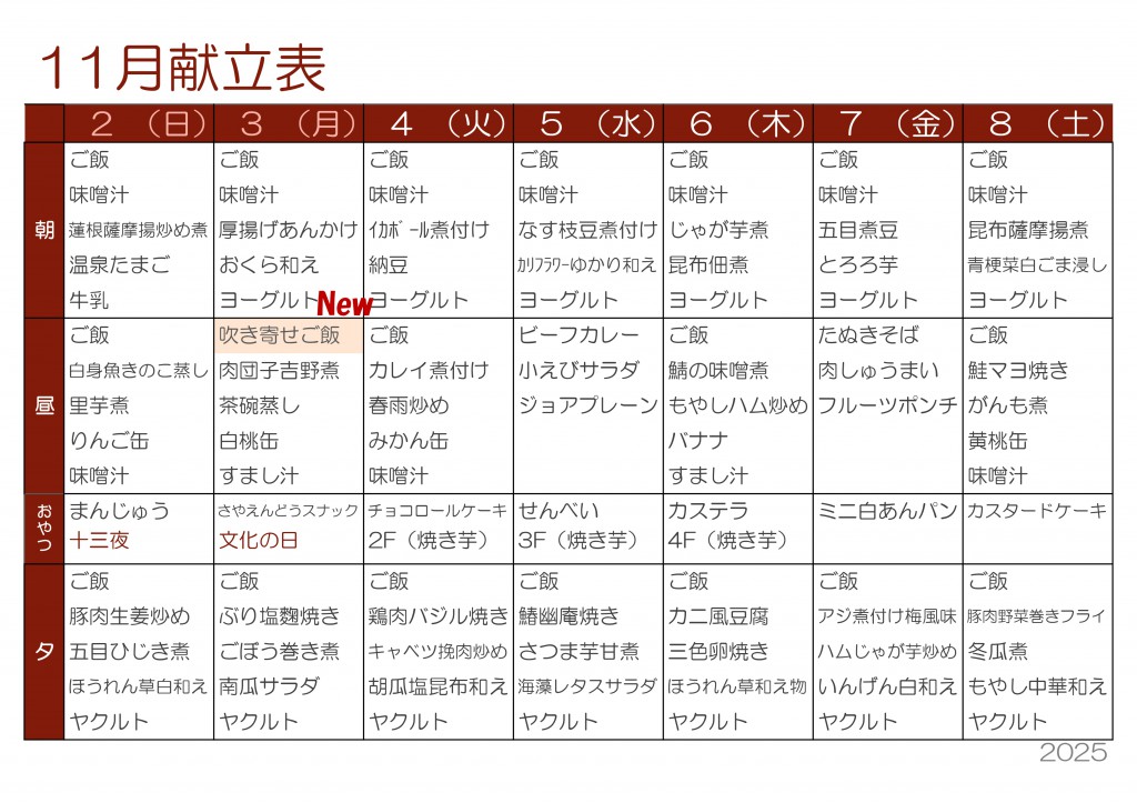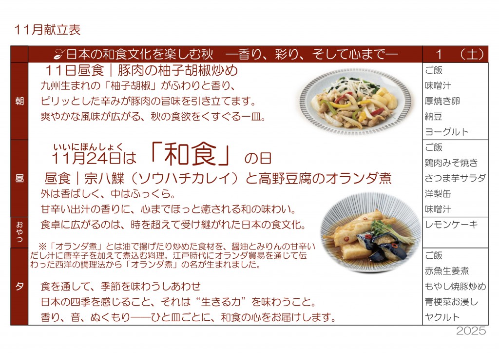 11月の献立表を更新しました——日本の四季を彩る、和のこころを食卓に2025/10/27