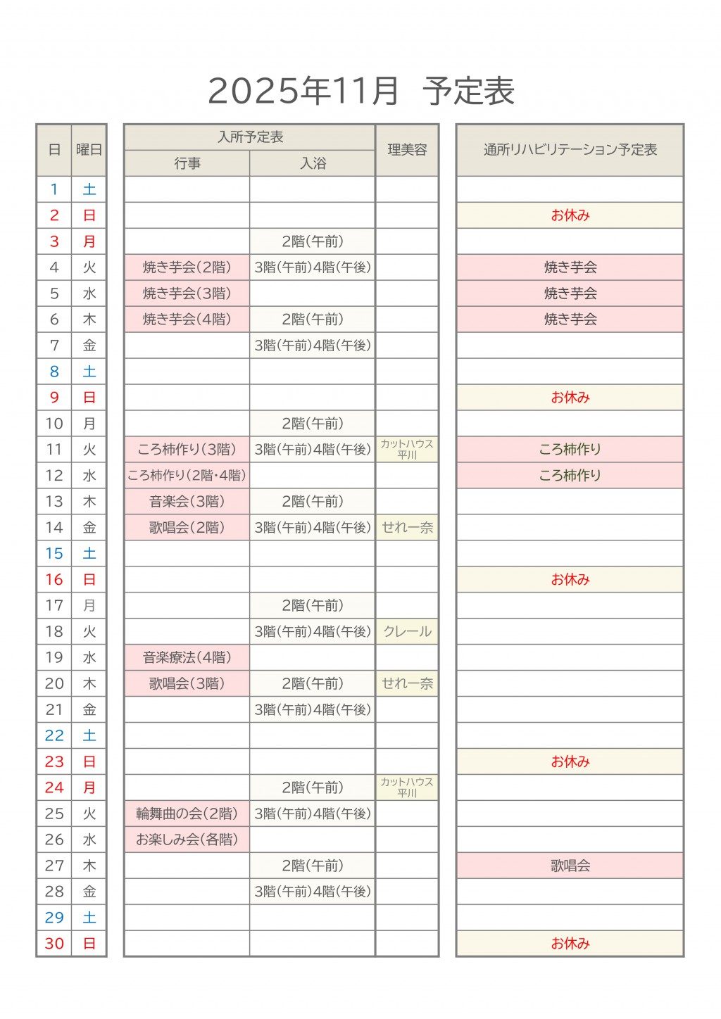 11月の予定表を更新しました ——深まる秋、ぬくもりに包まれて2025/10/27