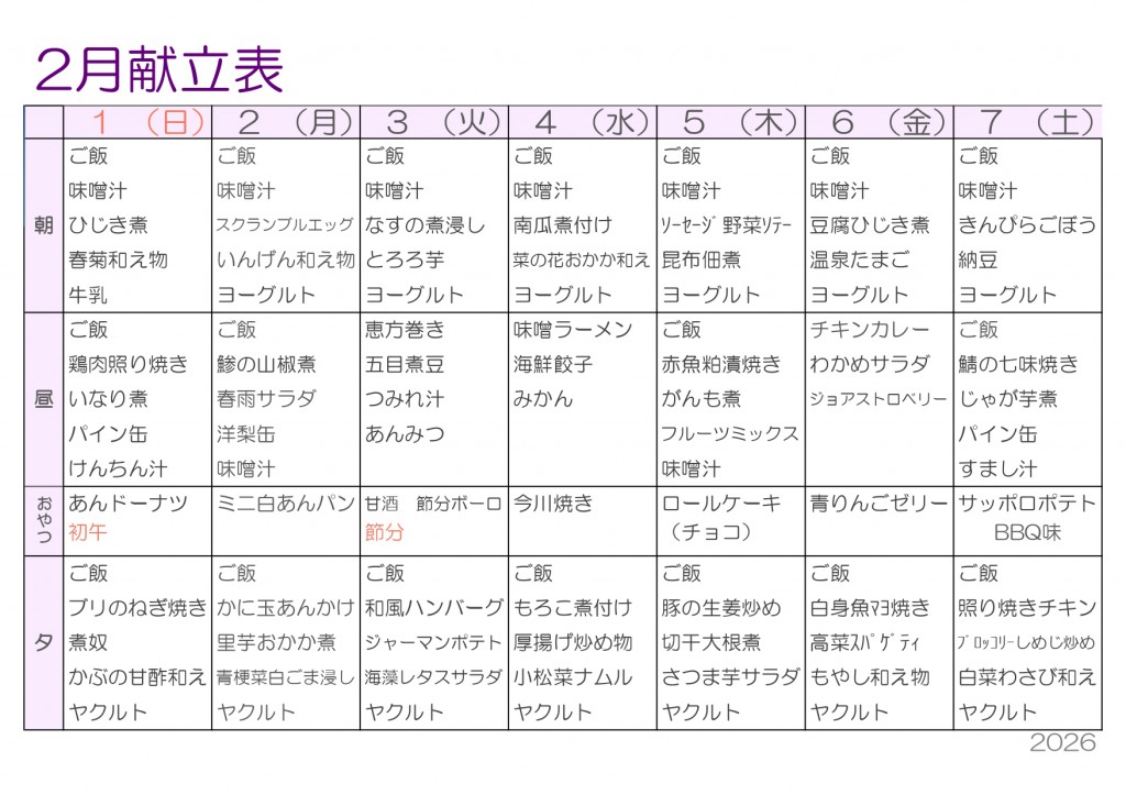 2月献立表を更新しました ——寒さに負けない!おいしく食べて、冬を乗り切る2月ごはん‼2026/01/26