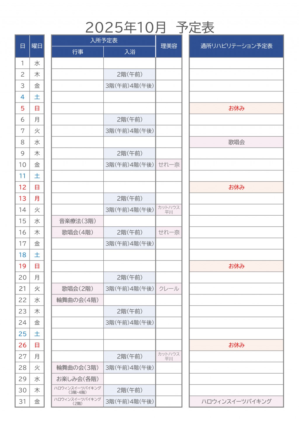 10月の予定表を更新しました ――彩りの秋、ハロウィンの笑顔とともに2025/09/25