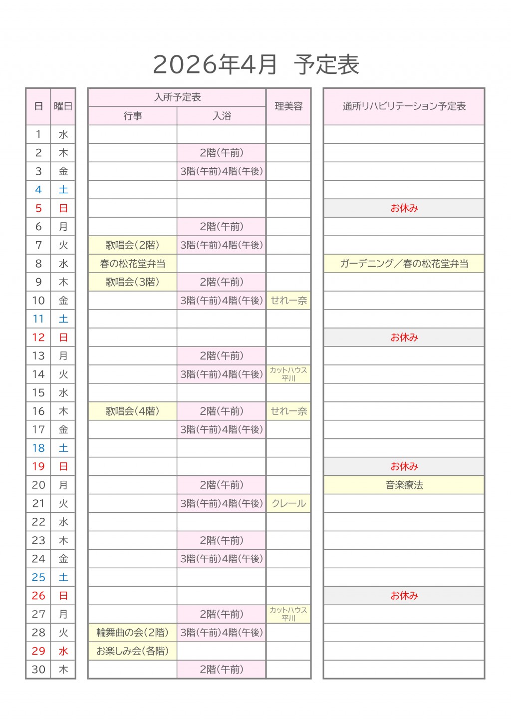 4月の予定表を更新しました ——春爛漫、心ほどける時間がはじまる2026/03/25