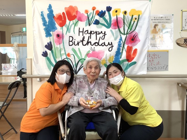 今月は、入所者3名様、通所リハビリ利用者3名様がご誕生日を迎えられました。