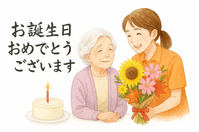 バースデーカードを手にした皆様の表情には、深まる季節にふさわしい、落ち着いた笑顔と感謝のぬくもりが広がり、スタッフの歌声とともに、フロアはまるで秋の陽だまりのような温かい空気に包まれました。