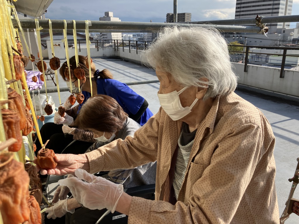 今年も、利用者様とともに秋の風物詩「枯露柿作り」を行いました。