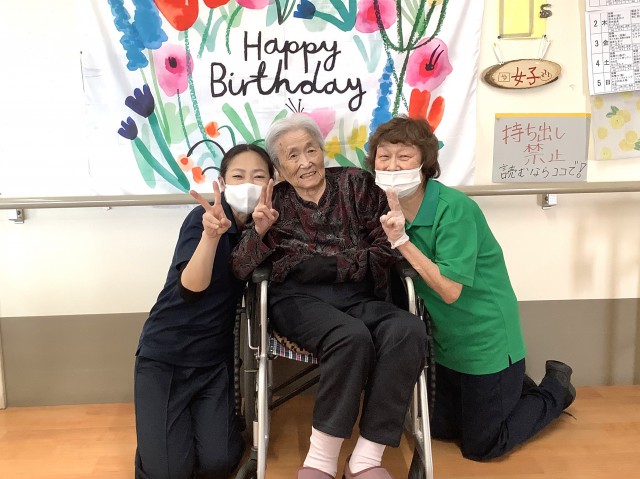 今月は、入所者様6名、通所リハビリ利用者様11名、計17名の皆様がお誕生日を迎えられました。