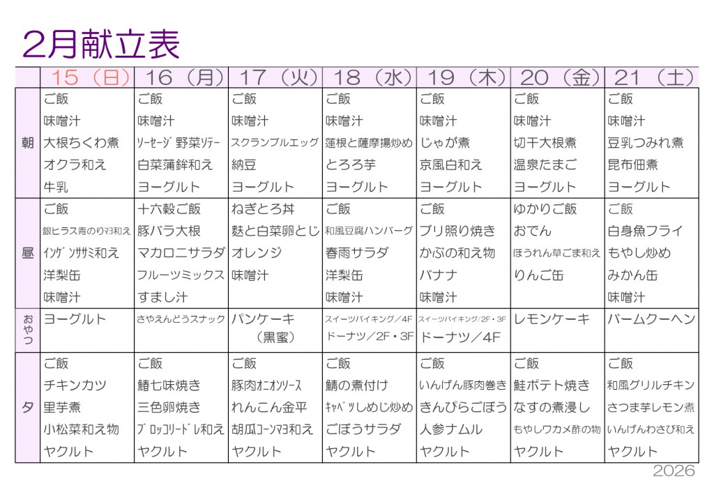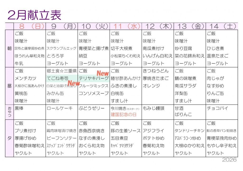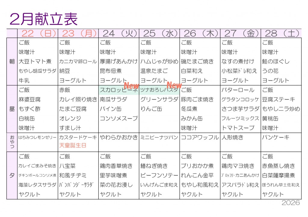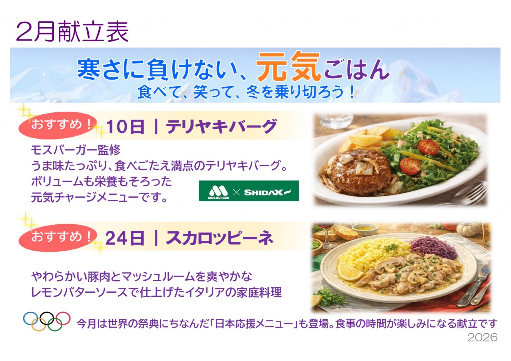 2月献立表を更新しました ——寒さに負けない!おいしく食べて、冬を乗り切る2月ごはん‼2026/01/26