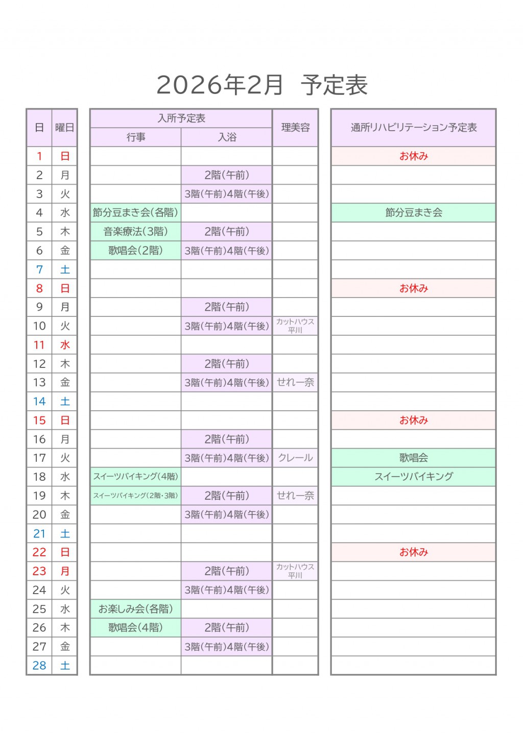 2月の予定表を更新しました ——寒さの先に、春。笑顔の先に、福。2026/01/26