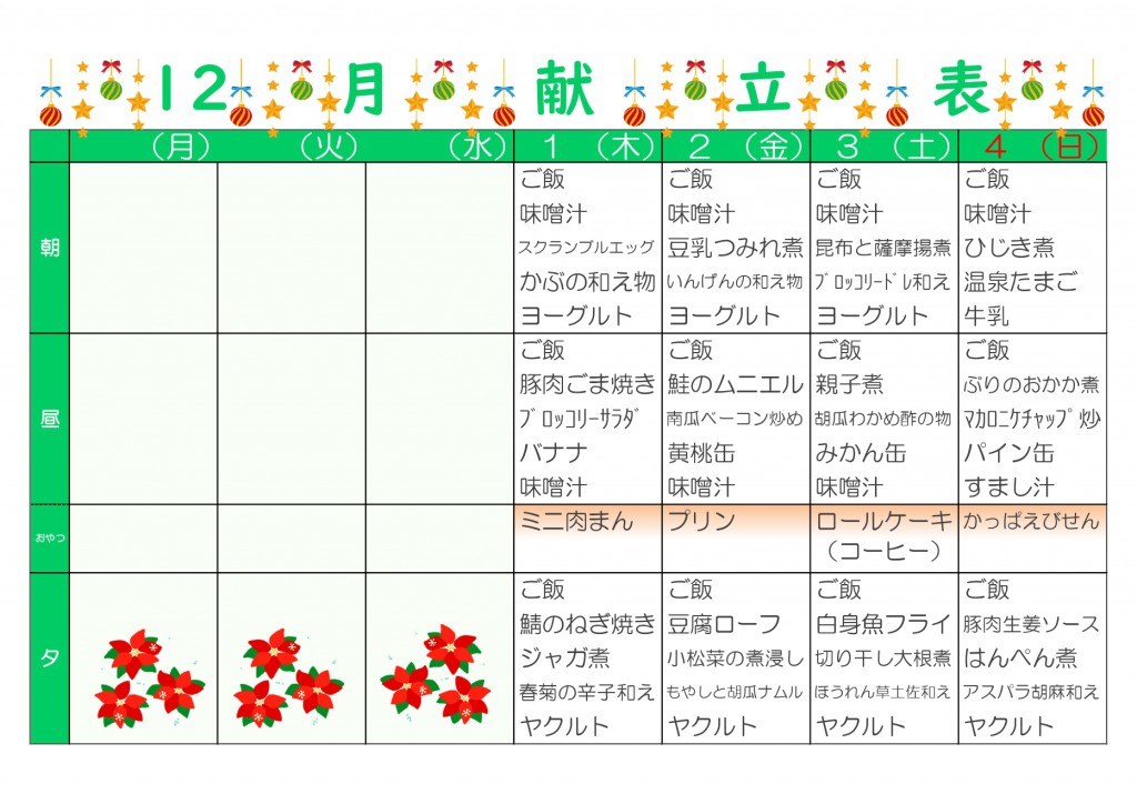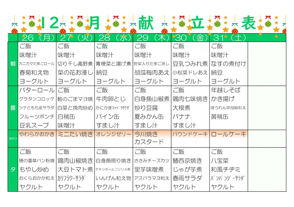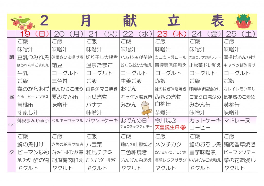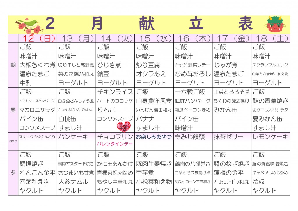 予定表・献立表